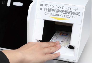 利用希望される患者さまは、来院時の際、1階新患受付記載台横に設置してあります顔認証付きカードリーダーにマイナンバーカードをかざしてください。(医療保険の新規加入直後、保険証が失効している場合など、加入状況が確認できない場合がございます。)